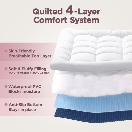 - Top surface layer made entirely of 100% velvety soft flocked material for greater comfort.