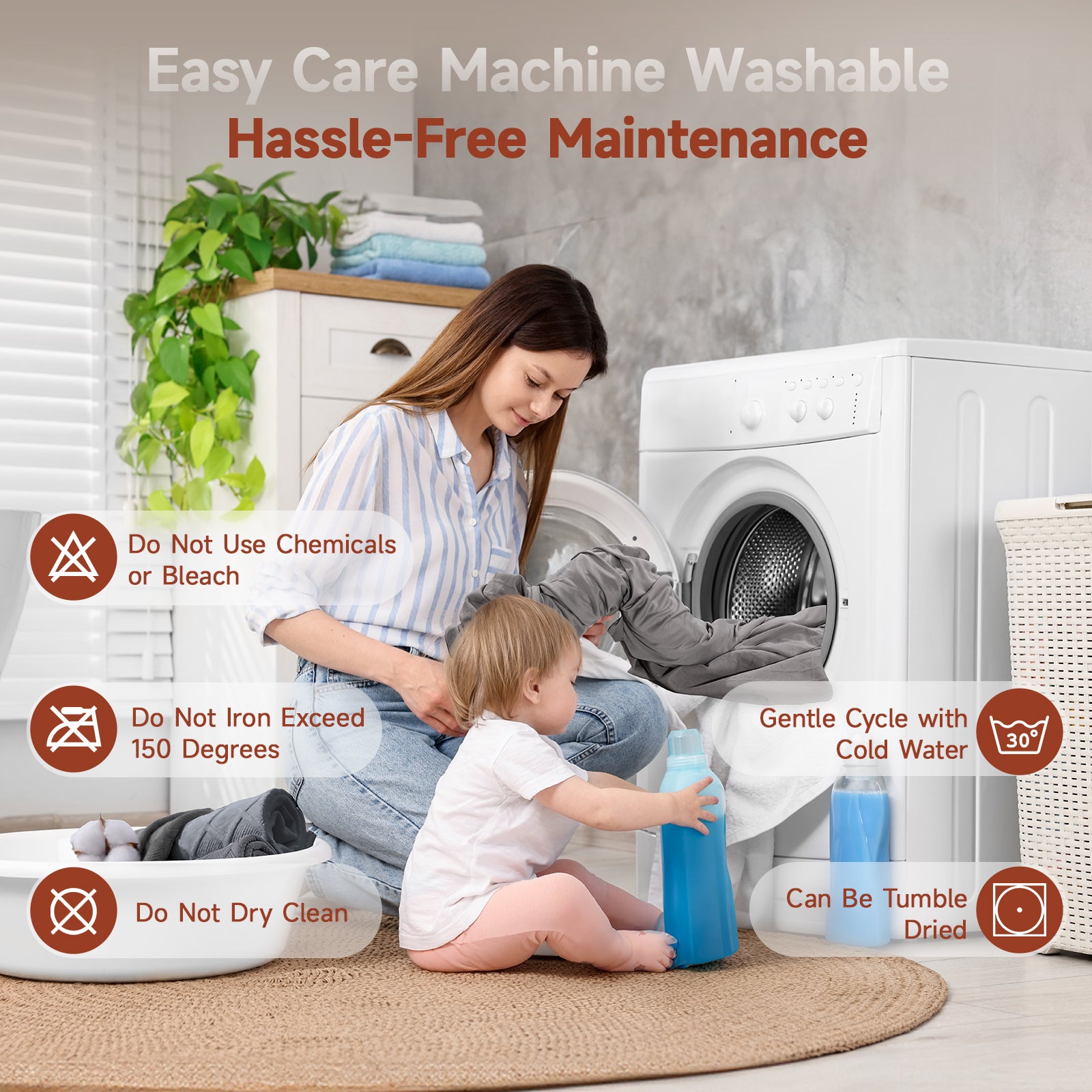- Machine Washable and Easy to Care For: Simplify your bedding routine with the CHERIMOR fitted sheet, designed for effortless care and maintenance. Fully machine washable, this sheet remains soft, wrinkle-free, and vibrant even after repeated washes. No special treatments or delicate handling are required—just toss it in the wash, and it’s ready to use again. Enjoy a fresh, clean bed with minimal effort, making CHERIMOR’s fitted sheet a practical yet luxurious choice. Tip: Wash separately from light-colored clothes during the first few washes to prevent any color transfer.
