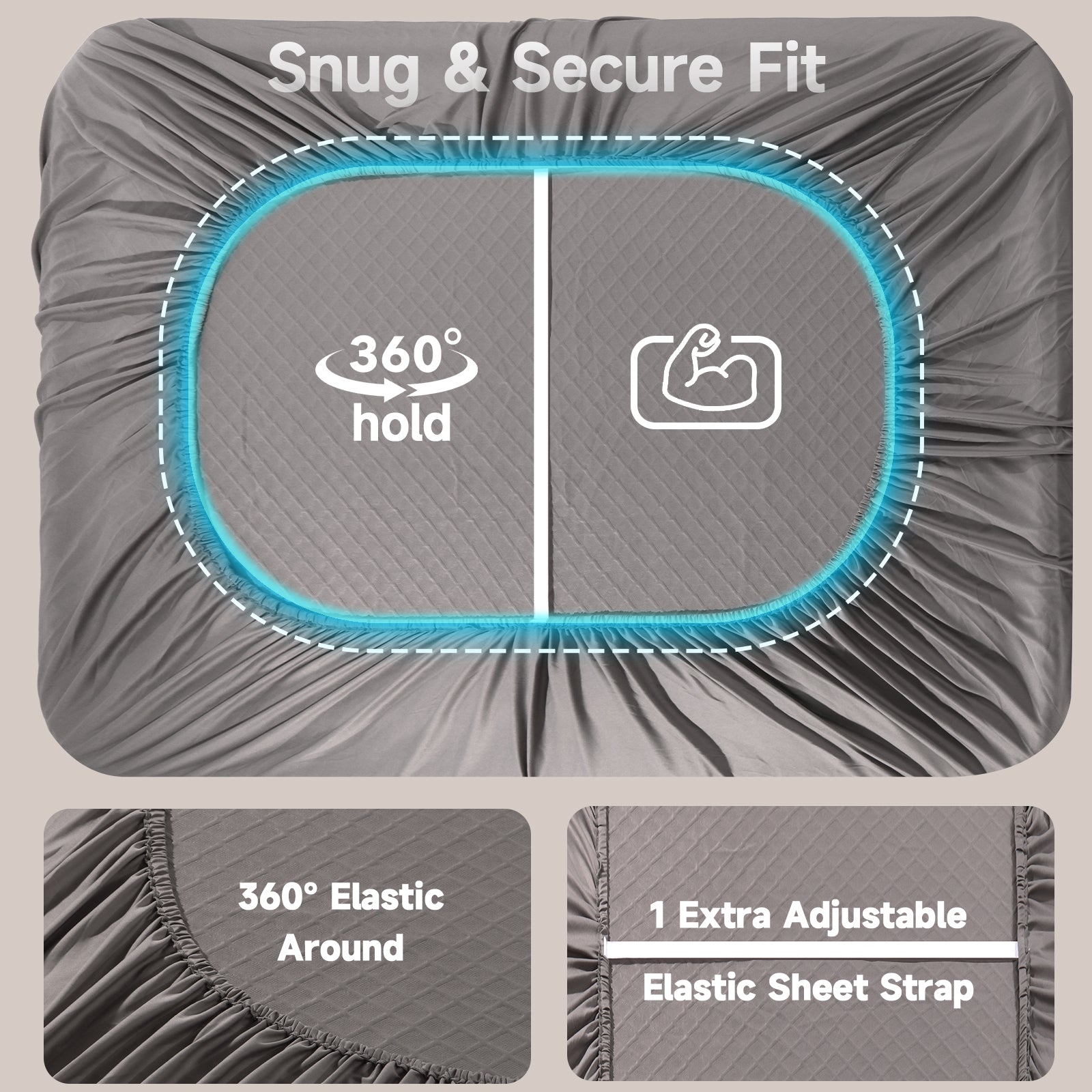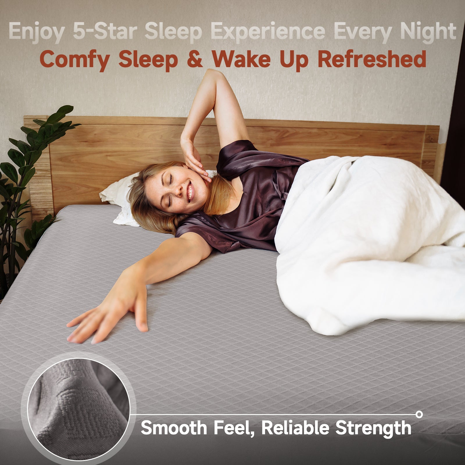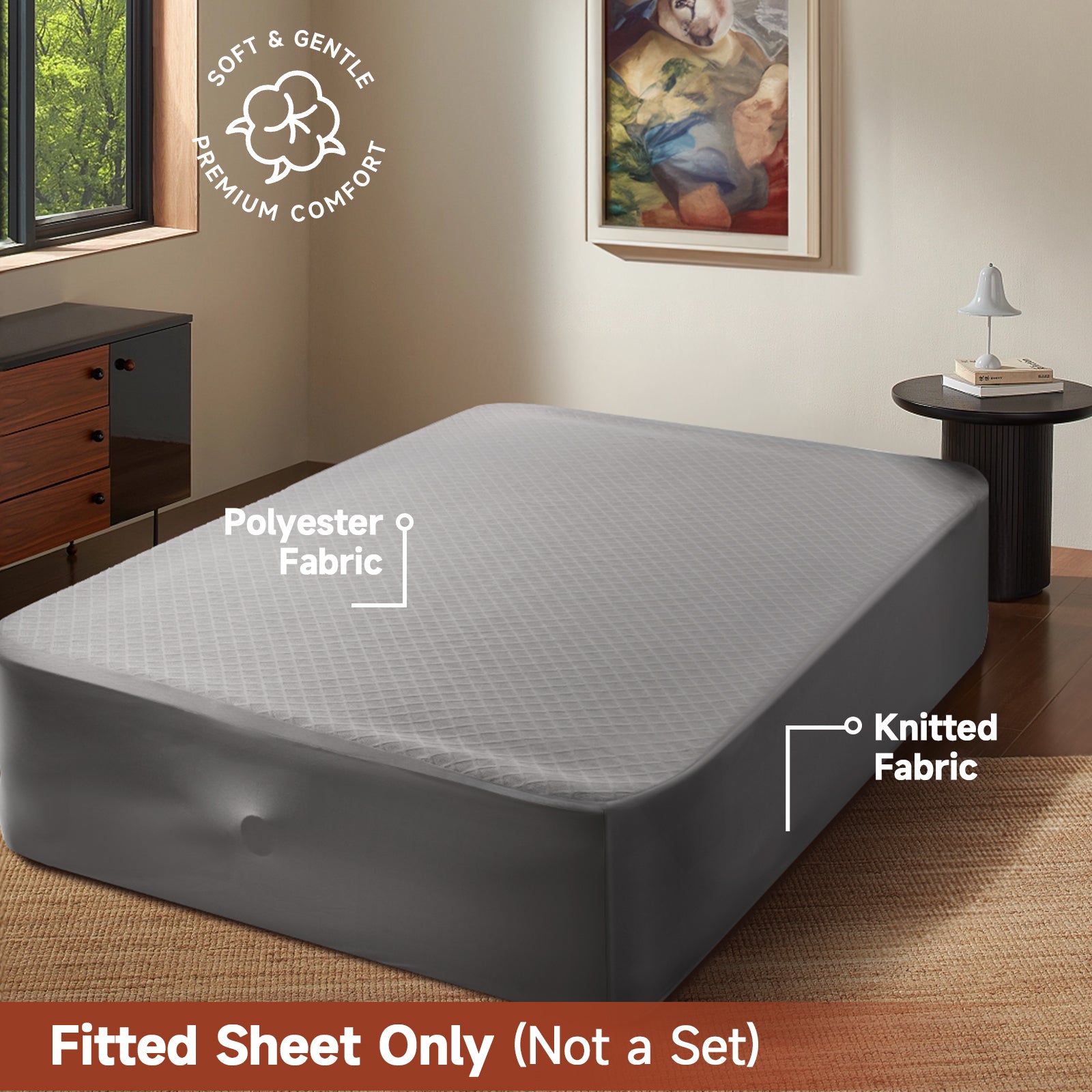 - Perfect Fit for All Types of Beds: Our fitted sheet measures 80 x 60 inches and accommodates depths of up to 24 inches. This ensures a perfect fit on various mattresses, from memory foam to pillow-top styles. Whether you’re refreshing your master bedroom, setting up an air mattress for guests, or creating a welcoming space for special occasions, this versatile fitted sheet is an ideal solution. The top is crafted from a sophisticated, breathable polyester fabric featuring a grey wave diamond quilted pattern, while the sides are made from soft knit fabric, adding a touch of elegance to your bedroom.
