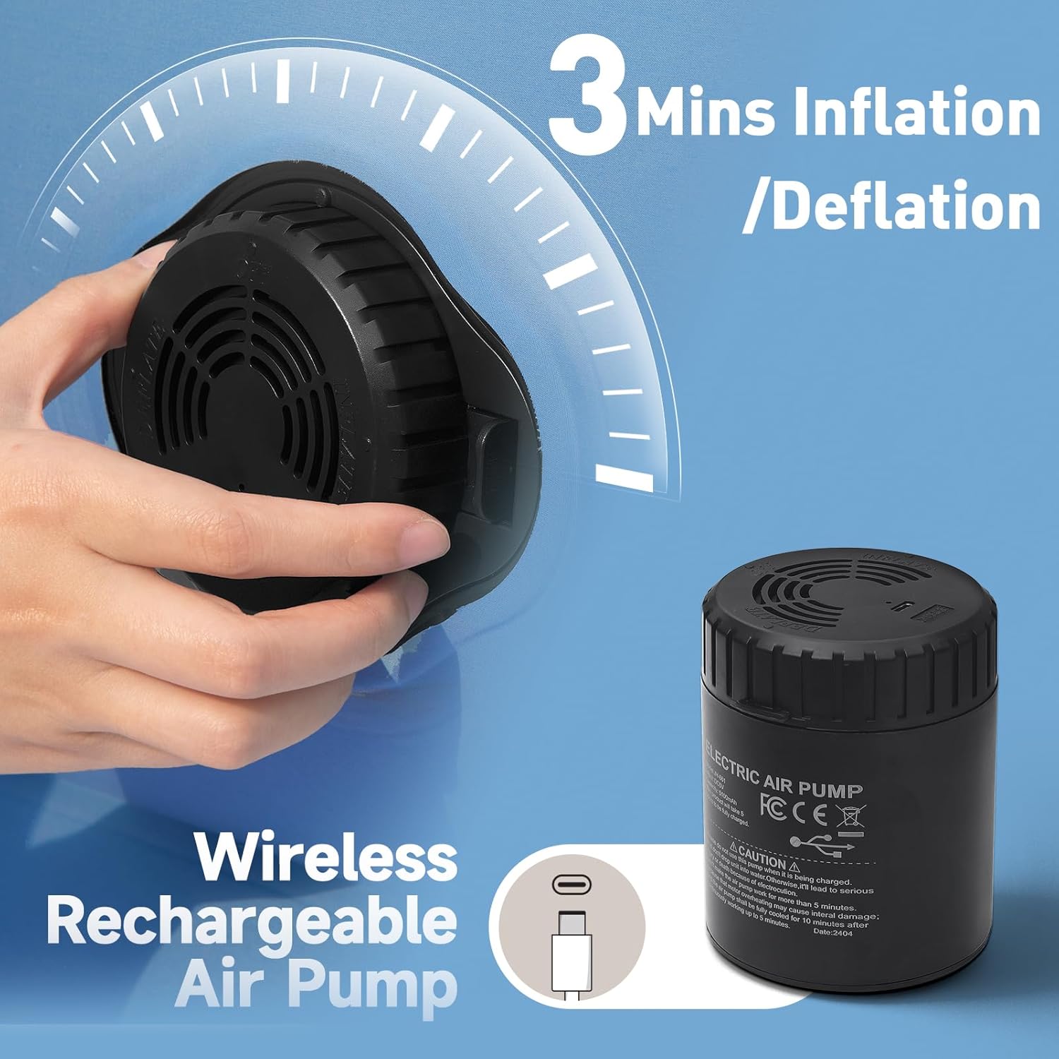 - 3-Minute Convenient and Fast Inflation/Deflation: 80*60*16 inch queen size air mattress built-in rechargeable electric pump can be fully air bed in just 3 minutes. The one-touch inflation setting makes it easy to achieve your ideal comfort level, and the wireless design allows you to use it anytime, anywhere. No need to worry about sockets